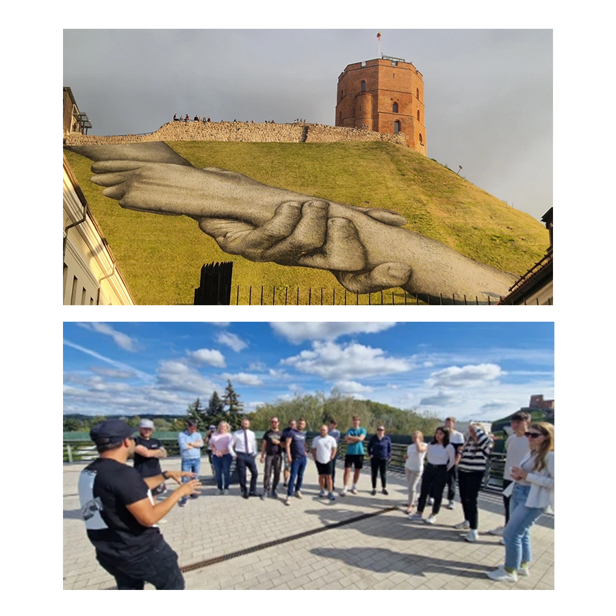 Après avoir réalisé une fresque monumentale à Fribourg en août [SAYPE | Fribourg], l’artiste Saype a posé ses pinceaux à Vilnius pour nous offrir sur la colline Gediminas, directement vis-à-vis des bureaux de CSD Engineers à Vilnius, une nouvelle création dans le cadre de son célèbre projet Beyond Walls, qui s'inscrit également dans le projet "L’Écho Français" en Lituanie [SAYPE à Vilnius (Echo français en Lituanie) - IF Lituanie (institutfrancais-lituanie.com)].
