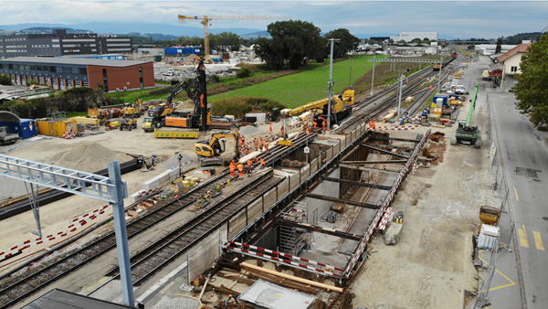 Du 19 au 22 septembre 2025, une opération coup de poing (OCP) s’est déroulée avec succès en gare d’Avenches : poser deux ponts provisoires sur les voies 1 et 2 afin de permettre la construction - dans les mois suivants et sous exploitation ferroviaire - d’un passage inférieur en béton coulé sur place.