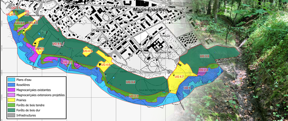 Milieux de l’état visés pour les unités de gestion et exemple de canaux de drainages existants
